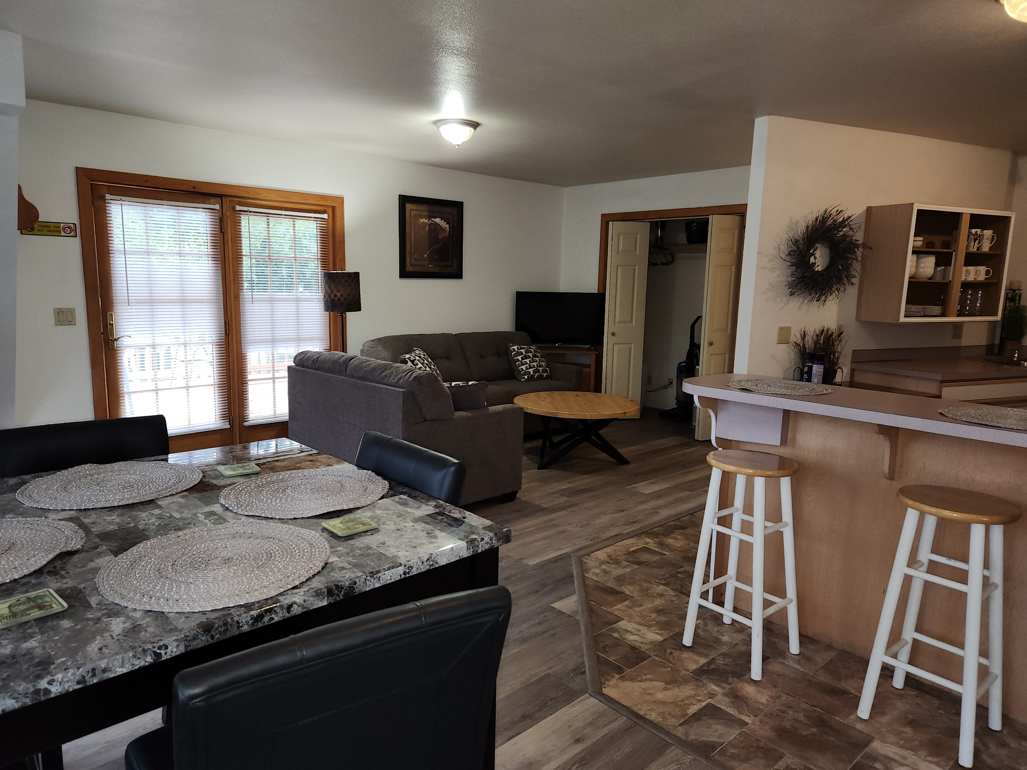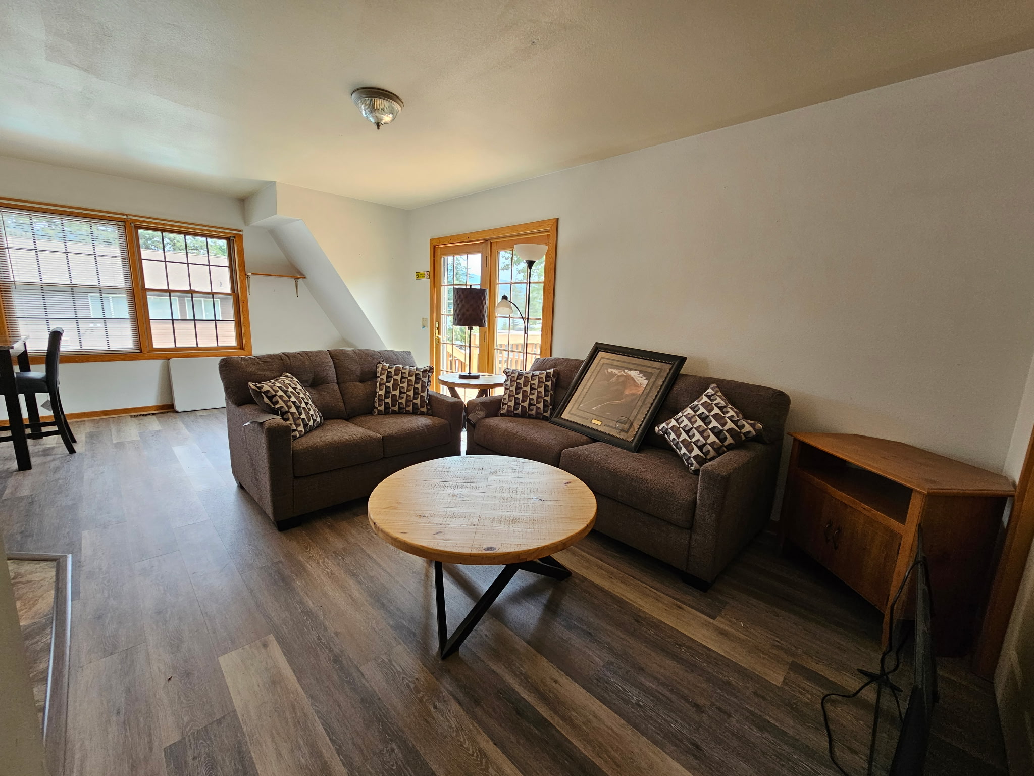 1 bed/1 bath upstairs condo. Large outside deck, Seasonal pool, Laundry onsite, Paved parking space, Furnished with utilities included. Utilities include: Power, Water, sewer, garbage, WiFi.